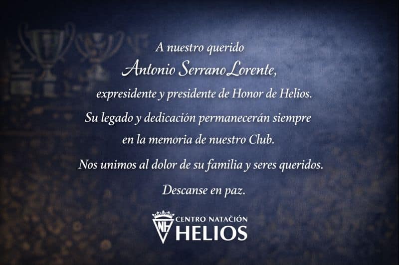 Fallecimiento de Antonio Serrano Lorente, Presidente de Honor de Helios