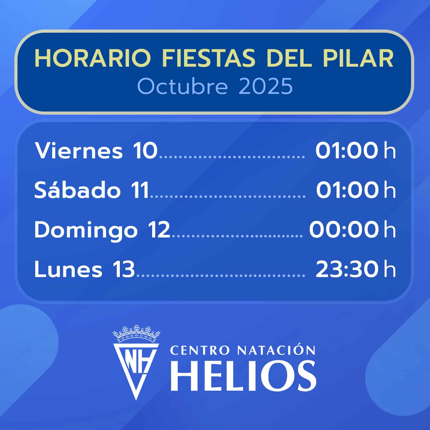 HORARIO ESPECIAL FIESTAS DEL PILAR 2025