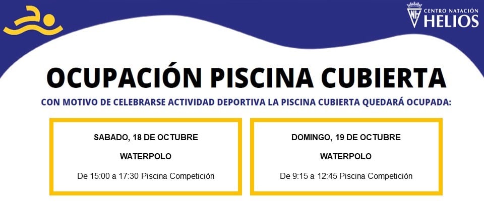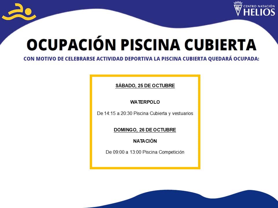 La disponibilidad de la piscina queda supeditada a la celebración de competiciones, incidencias imprevistas o trabajos de mantenimiento. Estos horarios son orientativos y pueden ser modificados sin previo aviso.